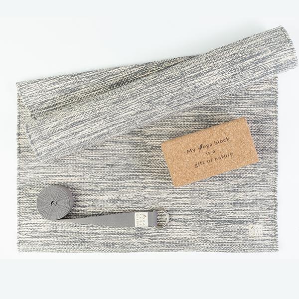 Le pack de Yoga Mysore composé de 3 articles, 1 tapis de Yoga en Coton Bio , 1 sangle de yoga 250, et 1 Block en liège.